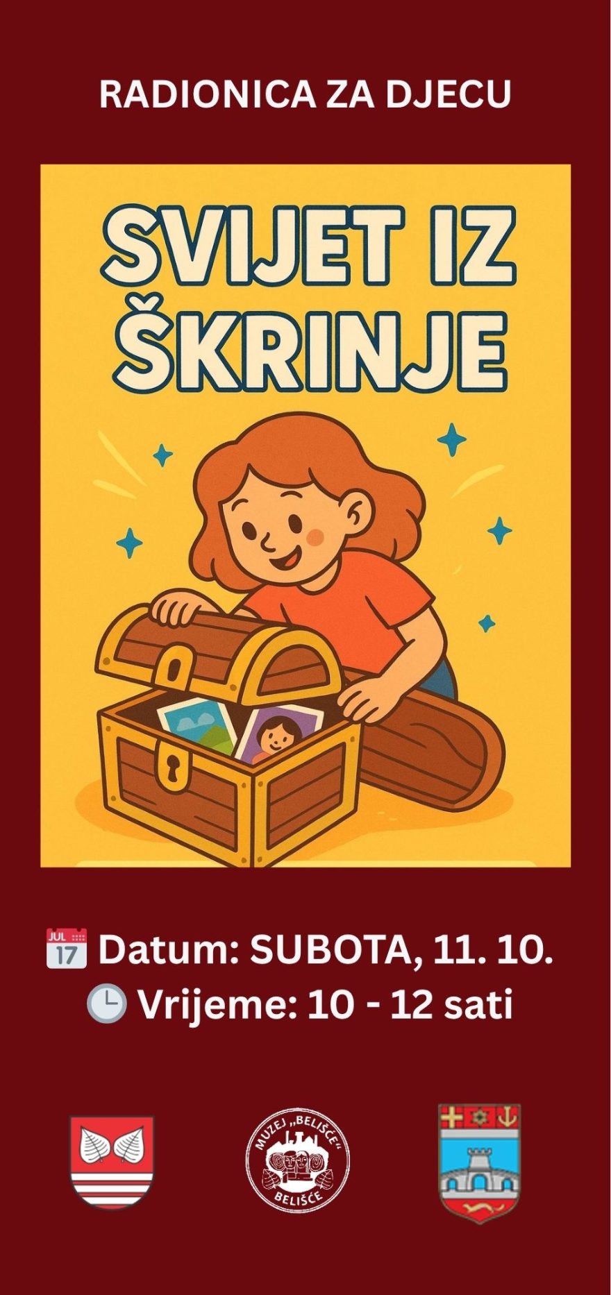 Izložbu prati održavanje dječje radionice pod istim nazivom “Svijet iz škrinje”, pod stručnim vodstvom Marije Šimić. Otvaranje izložbe i održavanje radionice održani su u sklopu Jesenskog festivala u Belišću 10. i 11. listopada 2025. godine. Mali “Čuvari jeseni” na sajmu su izrađivali lutke od komušine i bojali škrinjice u obliku bundevice, tema koja je primjerena jesenskom festivalu, te na taj način stvaraju svoj svijet koji će biti dio zajedničkih uspomena smještenih u simboličnu škrinjicu, čuvaricu naših uspomena.