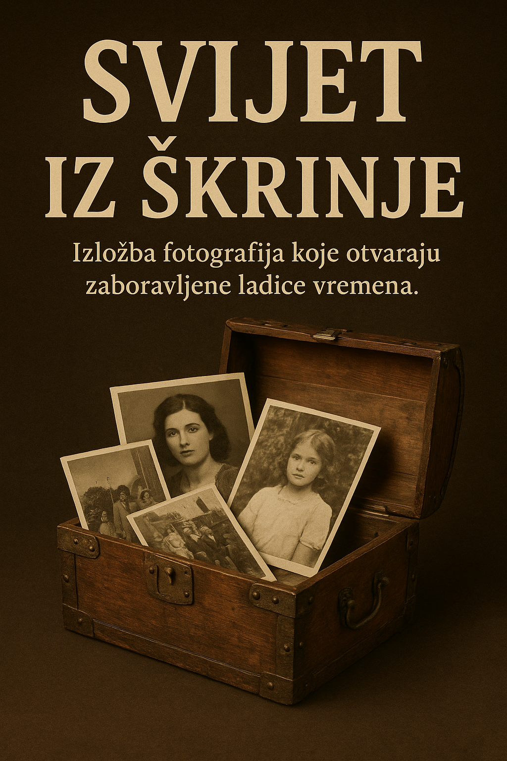 Izložba “Svijet iz škrinje” donosi odabir fotografija koje prikazuju djelić prošlosti našega grada; ulice koje su se mijenjale, ljude koji su gradili, stvarali, slavili i živjeli svoj život s ponosom i toplinom.